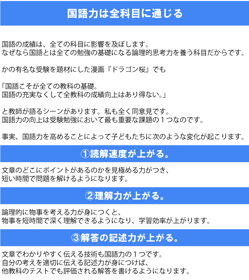ぜひ「国語力とは何か?」を知り、本当の国語の勉強の仕方を知っていただきたいと思います。